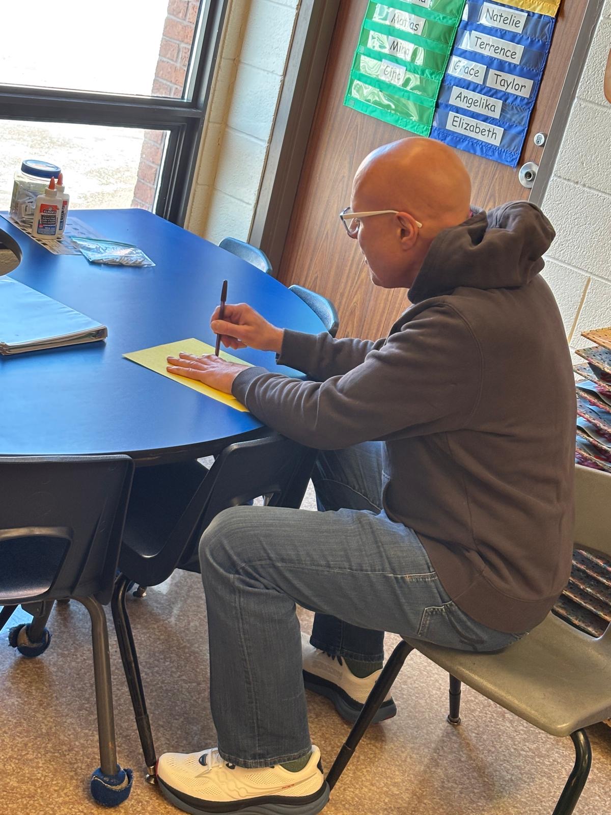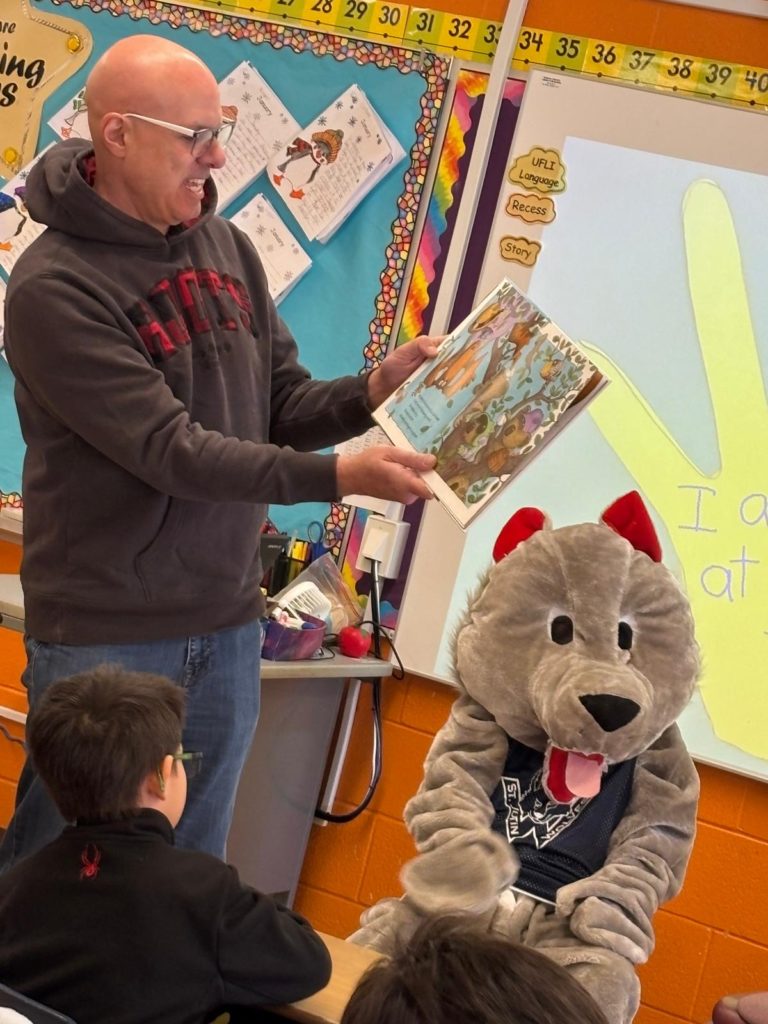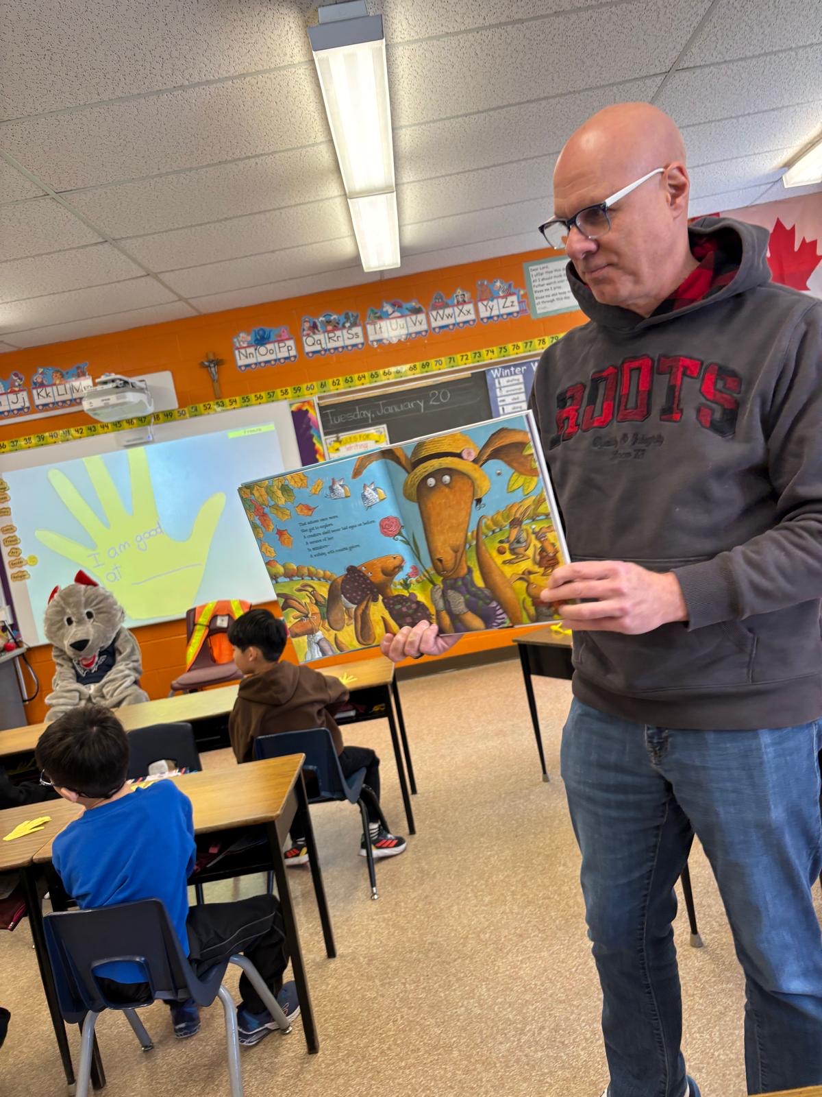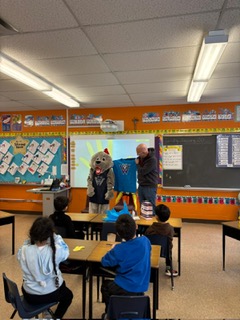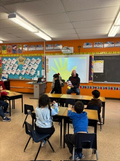 David was there to meet Ms. Noronha’s class, read them a book about virtues and answer their questions. With the next day being Let’s Talk Day, the conversation included some discussion about mental health topics, which David found impressive.