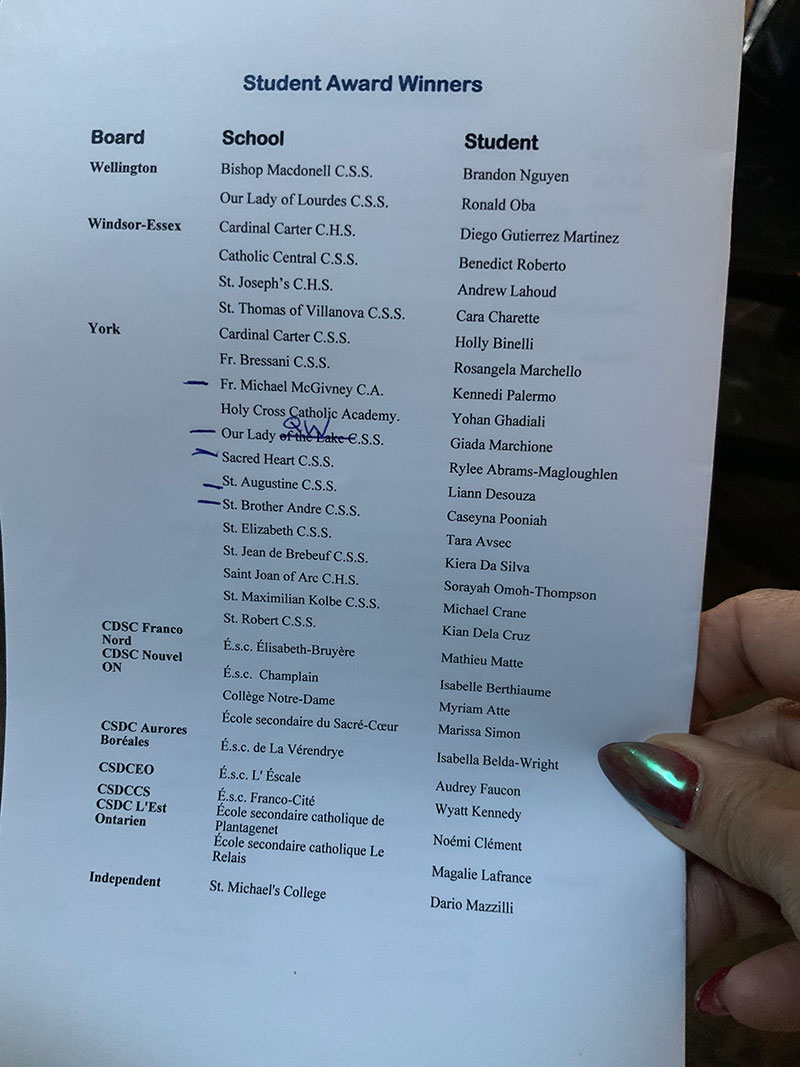 On October 25, 2025, Catholic educators from across Ontario gathered to honour some remarkable students who have demonstrated outstanding academic success while taking an active role in school life, community initiatives and parish involvement.